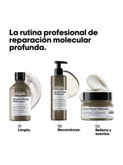 Para un resultado óptimo, utilizar después del champú Absolut Repair Molecular y del sérum aclarado. Aplicar uniformemente sobre el cabello secado con toalla. Dejar actuar de 1 a 2 minutos. Aclarar abundantemente.