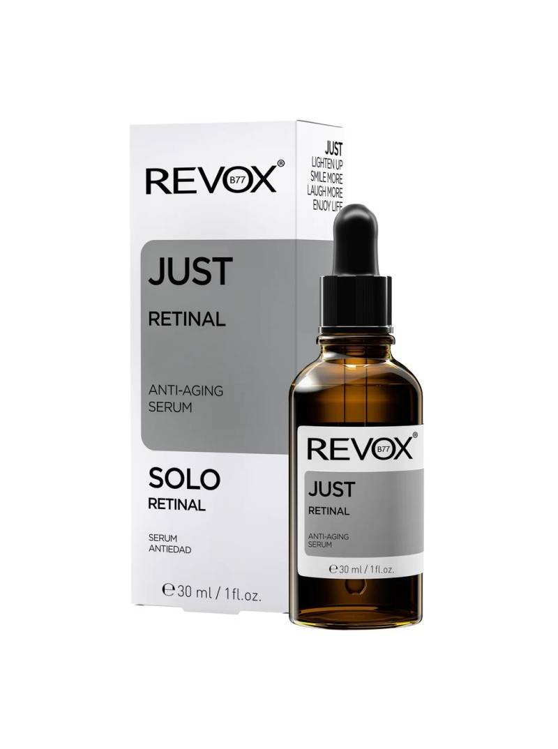 REVOX B77 JUST RETINAL SERUM contiene una cantidad óptima de Retinal, una forma de vitamina A que se ha demostrado científicamente que actúa contra la formación de signos prematuros de envejecimiento. Este potente ingrediente puede afectar los procesos de renovación celular y ayuda a promover la producción de colágeno, lo que mejora la textura y el tono de la piel. Esta fórmula suave proporciona beneficios tanto para suavizar como para iluminar la piel, ayuda a mantener una apariencia saludable e incluso tiene propiedades para la piel propensa al acné. Debido a la acción renovadora celular de la Retina, el sérum ayuda a eliminar las células muertas de la piel y a limpiar los poros, para prevenir la formación de imperfecciones.