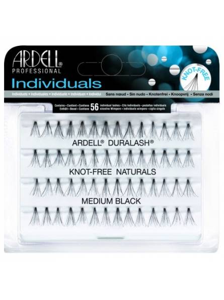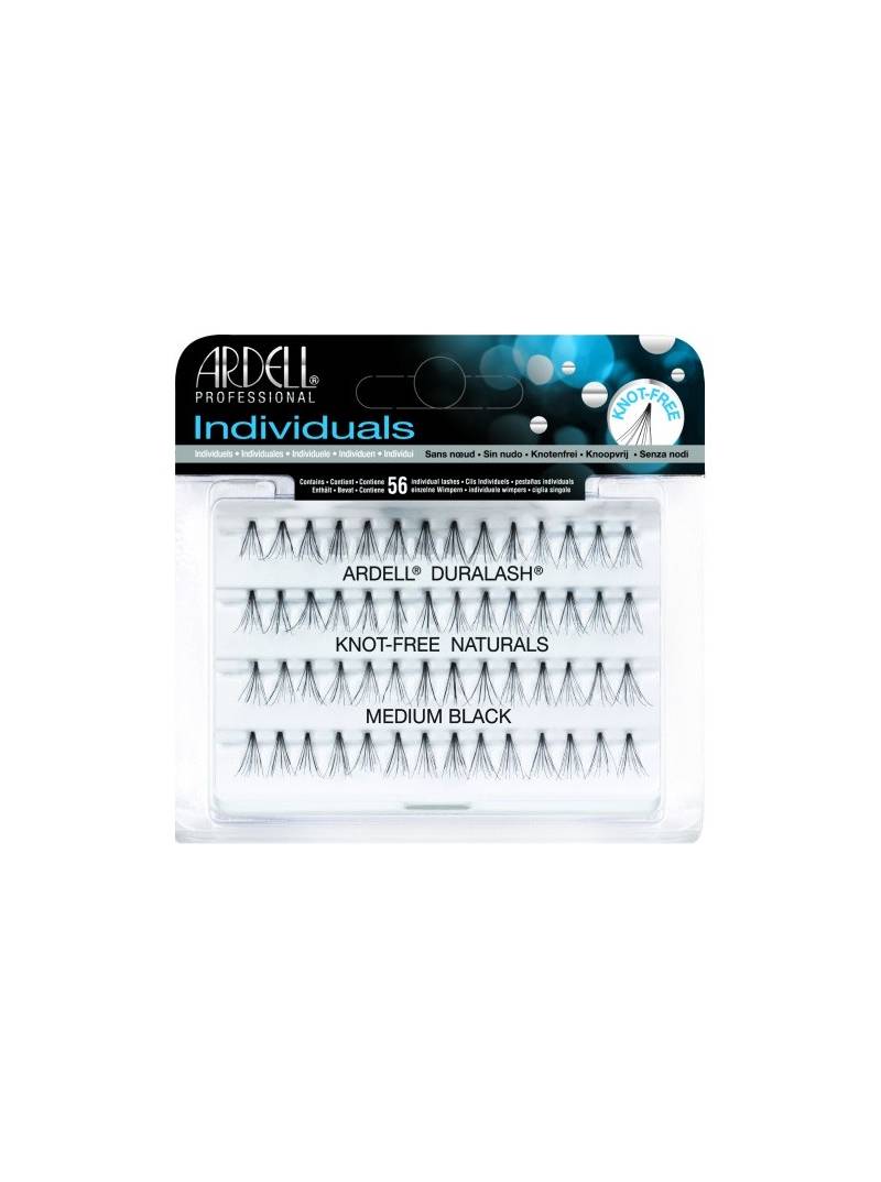 Ardell Duralash Naturals Knotted-free Medium Black. Las pestañas Individuales permiten crear cualquier look. Este pack contiene 56 grupos de pestañas negras y medianas, sin nudo. Aporta volumen y espesor a las pestañas finas. Deben aplicarse con el pegamento de pestañas LashTite.