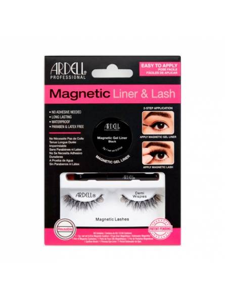 Magnetic Liner & Lash Demi Wispies son unas pestañas postizas innovadoras que permite fijar pestañas magnéticas al ojo con un delineador en gel en sólo 2 pasos: Primero se aplica el delineador magnético en el párpado, después se coloca la pestaña magnética por encima y queda totalmente adherida. Perfecto para todos los amantes de las pestañas, pero especialmente adecuado para principiantes y aquellos que son alérgicos a los adhesivos para pestañas y al látex. No se necesita adhesivo, es duradero e impermeable. No contiene parabenos ni látex.