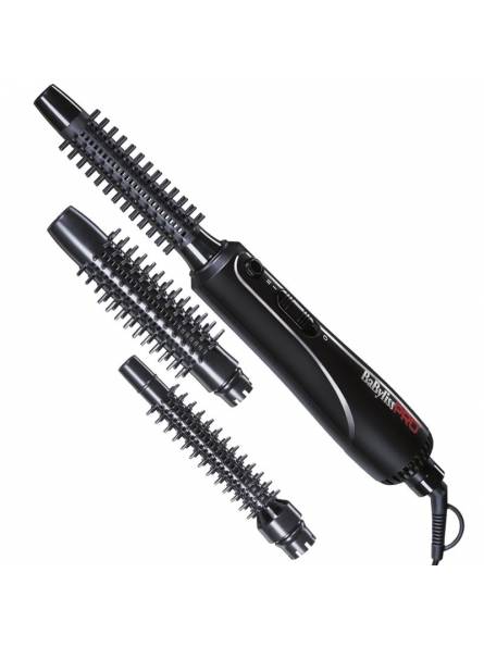 El cepillo soplador de aire caliente es un dispositivo ideal para peinar el cabello en casa. Un cepillo combinado con un secador de pelo, que te permitirá tener una mano libre para separar mechones y peinar el cabello sin esfuerzo. El cepillo soplador profesional Trio Airstyler de BaBylissPRO está equipado con 3 cepillos intercambiables de 3 tamaños diferentes. Se utiliza sobre cabello presecado y/o seco para perfeccionar el secado y el peinado. El cabezal del cepillo es extraíble, por lo que se puede quitar fácilmente tan pronto como se suelta el botón situado encima del interruptor de encendido. Cuando se vuelve a presionar el botón, el cepillo se mantiene firmemente en su lugar.