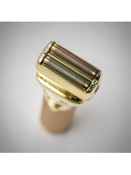 La afeitadora de doble hoja FXONE GOLDFX es una afeitadora de hojas de calidad profesional con una batería de repuesto. Experimenta el nuevo motor N1 sin escobillas con rodamientos duales para mayor eficacia. La batería recargable intercambiable de litio con botón de liberación ofrece hasta 3 horas de funcionamiento. Consiga afeitados limpios y más al ras del cuello, cara y línea de nacimiento del cabello gracias al cabezal pivotante con función de bloqueo y hojas de titanio dorado hipoalergénicas. Echa un vistazo a la recortadora de contorno completamente metálica de litio BaBylissPRO® GoldFX+r y la cortadora de cabello completamente metálica de litio BaBylissPRO® GoldFX+para combinar con las herramientas FXONE, todas compatibles con la misma batería.
