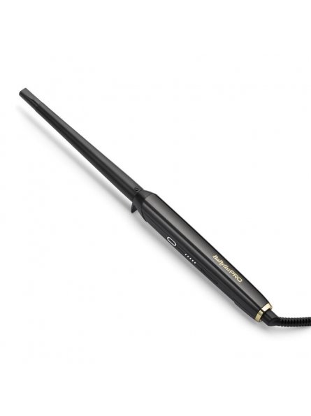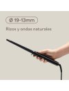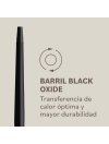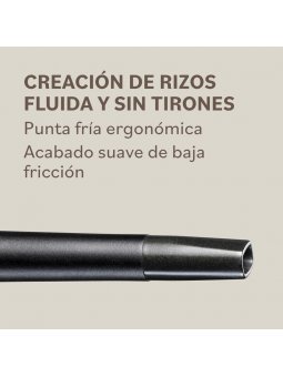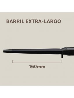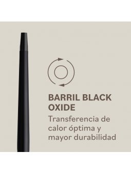 Características -Calentamiento rápido (lista para usar en 25 segundos) -Temperatura uniforme y constante en todo el barril -Barril de óxido negro suave y pinza cerámica para un calor rápido y homogéneo -5 ajustes de temperatura con función de bloqueo automático (140°C | 160°C | 180°C | 190°C | 200°C) -Función de memoria del último ajuste -Apagado automático (20 minutos) -Dimensiones del barril: Ø 19-13 mm x 160 mm de longitud -Punta fría ergonómica -Pinza avanzada que reduce la presión en el pulgar para mayor comodidad -Cable giratorio 360° de 2,8 m -Soporte de seguridad integrado -Multivoltaje para usar en cualquier parte del mundo
