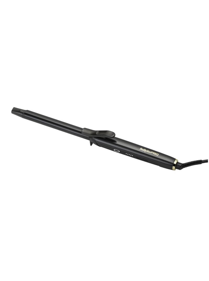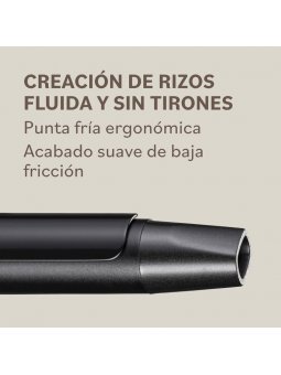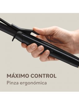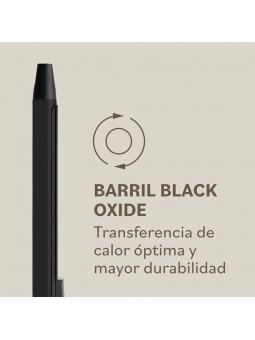 Características -Calentamiento rápido (lista para usar en 25 segundos) -Temperatura uniforme y constante en todo el barril -Barril de óxido negro suave y pinza cerámica para un calor rápido y homogéneo -5 ajustes de temperatura con función de bloqueo automático (140°C | 160°C | 180°C | 190°C | 200°C) -Función de memoria del último ajuste -Apagado automático (20 minutos) -Dimensiones del barril: Ø 19 mm x 160 mm de longitud -Punta fría ergonómica -Pinza avanzada que reduce la presión en el pulgar para mayor comodidad -Cable giratorio 360° de 2,8 m -Soporte de seguridad integrado -Multivoltaje para usar en cualquier parte del mundo