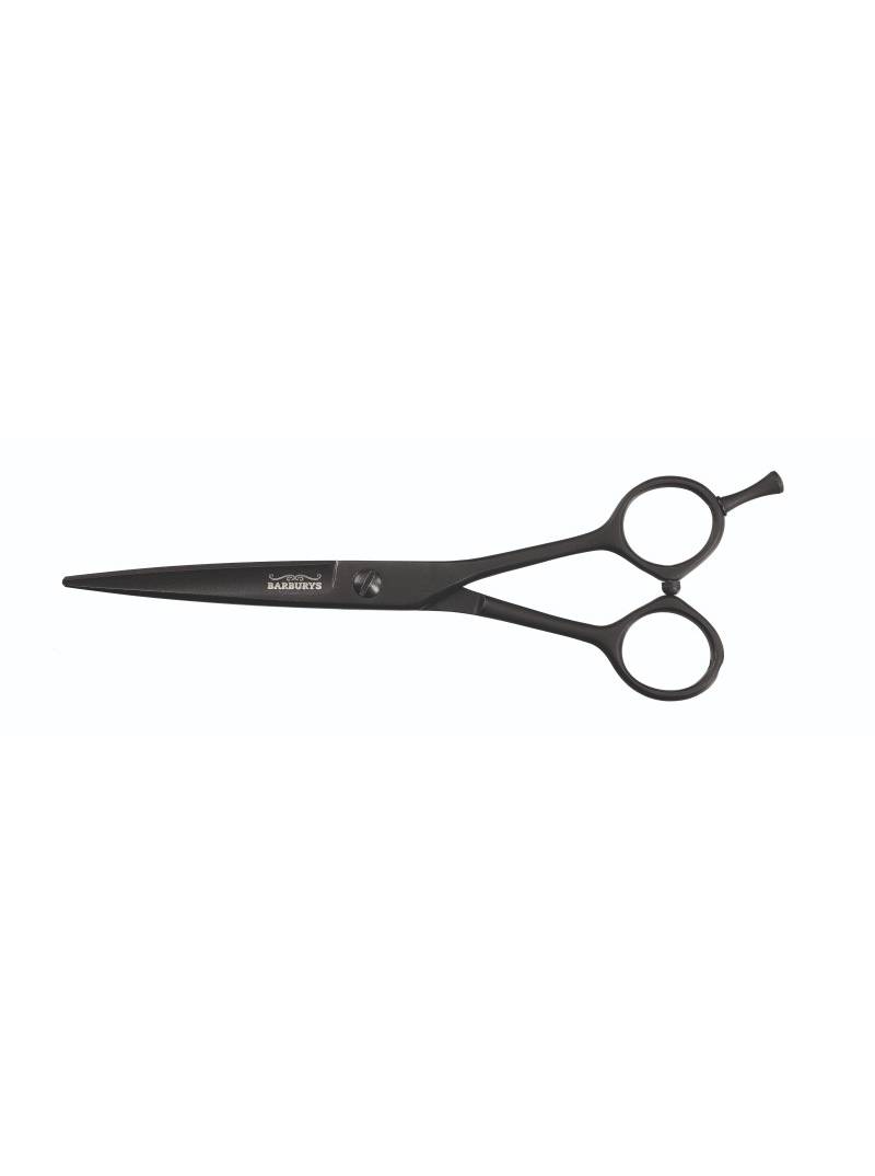 Straight barber scissors, with a matte black finish and hidden screw - 6".
