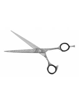 Tijeras de mango offset grabadas con láser al estilo del acero de Damasco.