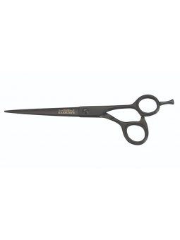 Esta elegante tijera de barbero erganómica con diseño de mango desplazado está fabricada con acero inoxidable japonés 44C con una hoja de corte convexa que es perfecta para las técnicas de precisión y corte. El reposa-dedos extraíble ayuda a evitar la fatiga de la muñeca.
