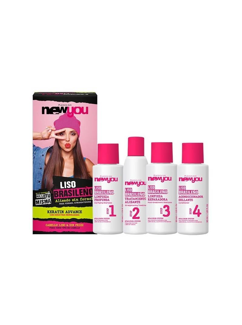 Paso 3: Lavar el cabello con el Shampoo Post Treatment (3) hasta retirar los residuos. Paso 4: Enjuagar dos veces si fuera necesario. Luego retirar el excedente de agua y aplicar el Conditioner / Liso Brasileño Acondicionador Sellante (4), dejar actuar por 5 minutos y enjuagar con abundante agua. Finalmente secar el cabello con secador.