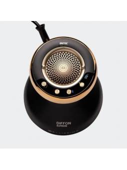 Bellissima Diffon Supreme es el difusor de aire caliente que integra difusor y secador en una sola herramienta, para un secado personalizado que resalta la belleza de tus rizos. El innovador sistema Supreme Curl Flow, concebido por profesionales expertos en rizos y diseñado por los mejores ingenieros, distribuye el aire de manera más uniforme alrededor de los rizos y simula el secado natural, ayudando a reducir el encrespamiento, para lucir unos rizos suaves, elásticos y definidos. La acción combinada de la rejilla perforada y de los 12 dedos largos permite secar el cabello con delicadeza, sin descomponer los rizos. Gracias a las 2 velocidades y a las 3 temperaturas, puedes seleccionar la combinación más adecuada para tu cabello, y el flujo de aire frío suave es perfecto para fijar los rizos. Concebido para cualquier tipo de rizo, Diffon Supreme es ideal para el cabello más largo y tupido: la placa difusora XL recoge más pelo y seca el pelo más rápido. La tecnología Ceramica & Argan Oil ejerce una acción antiencrespamiento y antisequedad gracias al calor bueno de la cerámica impregnada en aceite de argán. La innovadora Ion Care Technology mantiene el cabello hidratado y el control digital del calor lo protege de un exceso de calor. Diffon Supreme está diseñado para garantizar el mejor confort de uso. El mango tiene una cavidad de doble pared para poder sujetarlo cómodamente a la temperatura adecuada. Y con el práctico neceser, podrás llevarlo siempre contigo.