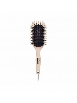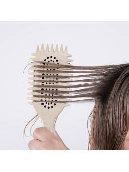 Características: -Cepillo para peinar y dar forma al rizo. -Fabricado con fibra de trigo y cerdas de nylon. -Estructura perforada para acelerar el secado y pin plegable para separación. -Color crema.