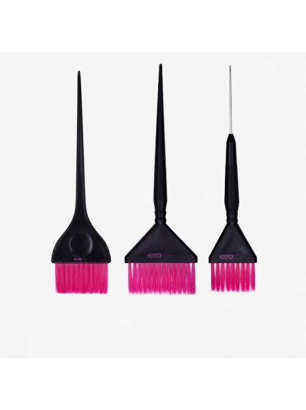 Set de 3 paletinas para cubrir todas tus necesidades a la hora de tintar el cabello. Paletina para detalles con mango ergonómico y punta de metal, paletina universal y paletina ancha con mango ergonómico.