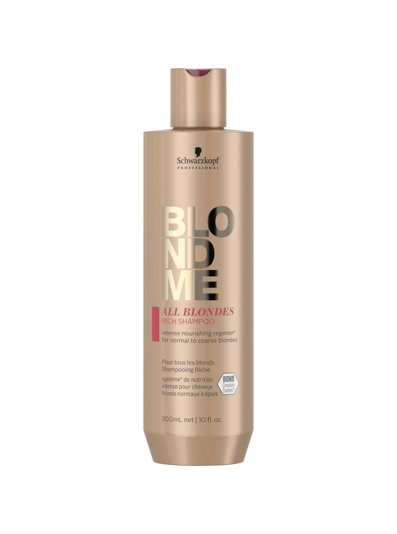 BLONDME Champú Enriquecido para Todo Tipo de Rubios, con la Tecnología 3D Bond Creation y el Complejo Cashmere protein, ayuda a crear puentes nuevos mientras limpia suavemente, ilumina y nutre intensivamente el cabello rubio de normal a grueso.