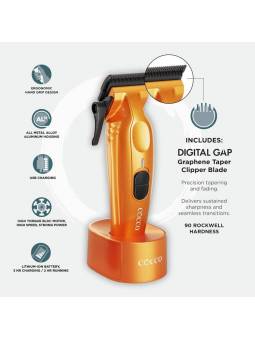 La cortadora de pelo VELOCE PRO cuenta con una cuchilla cónica de grafeno Digital Gap™ de primera clase con un sistema de protección de la piel integrado. La cuchilla de grafeno proporciona lubricación natural, baja fricción y temperatura durante el uso continuo. La cuchilla de grafeno se mantiene afilada y fría por más tiempo y brinda una experiencia de corte suave y sin esfuerzo.