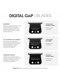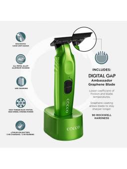 CUCHILLA DLC DIGITAL GAP Ambassador La recortadora Cocco Veloce Pro cuenta con una cuchilla DLC Ambassador de Digital Gap de primera clase con un sistema de protección de la piel integrado. La cuchilla DLC Ambassador de Digital Gap ofrece un rendimiento superior con un revestimiento táctil.