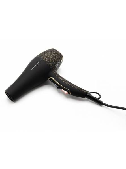 FLOW ULTRA GOLD LEOPARD Este secador profesional es puro lujo. No sólo su aspecto es espectacular: sus características técnicas lo convierten en una herramienta excelente: motor súper potente, alto caudal de aire y gran velocidad de secado durante horas y horas de funcionamiento.