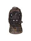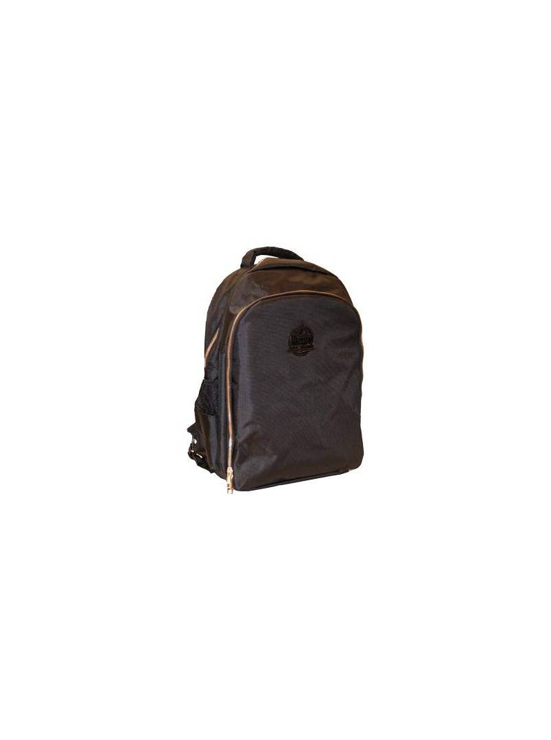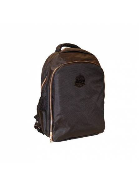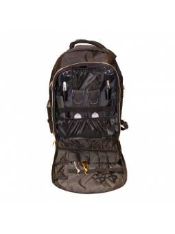 Mochila con bolsillo exterior en un lateral y compartimentos en el interior para tijeras, peines, máquinas de corte.