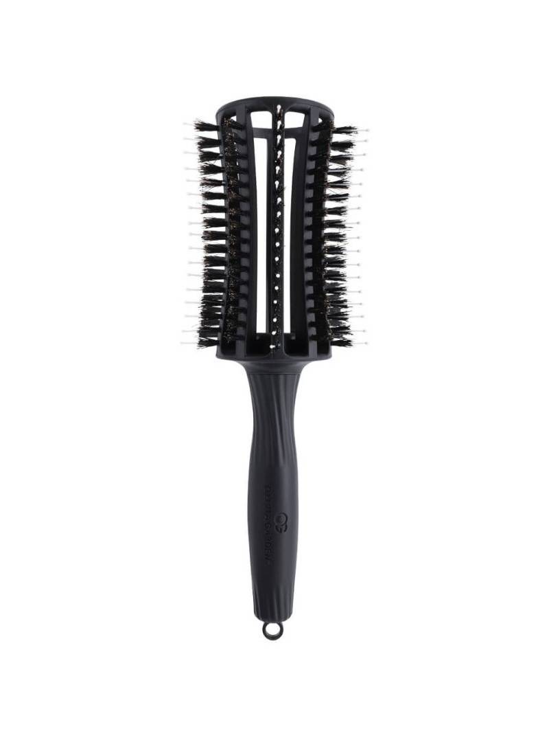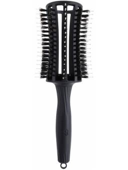 Gracias al flujo de aire optimizado, el cabello se seca de forma rápida y eficiente, sin secarse ni sobrecalentarse. Gracias al material ligero y al mango ergonómico, este cepillo se adapta perfectamente a la mano sin ejercer una tensión innecesaria en la muñeca, el brazo y el hombro. La combinación de pelo de jabalí 100% con plumas de nylon ionizado antiestático proporciona un hermoso brillo y volumen. Además, las cutículas del cabello están cerradas, lo que contribuye a una vida útil más larga y previene la deshidratación. El punto de distribución en el extremo del mango es perfecto para crear un estilo preciso. Mezcla de pelo de jabalí y pelo de nylon.