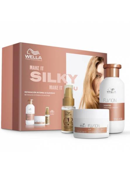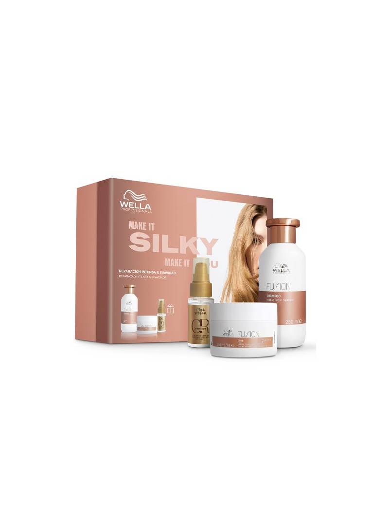 Pack compuesto por el champú y la mascarilla reparadores de la gama Fusión y el aceite iluminador Oil Reflections de Wella Professionals, especialmente diseñado para proporcionar al cabello o una nutrición intensa y una increíble suavidad