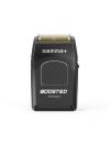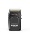 Afeitadora profesional para terminaciones -Motor muy potente 11.000 rev/min. -Hoja ultrafina de titanio dorado hipoalergénica. -Accesorios para personalizar el producto. -Batería recargable con 3 indicadores LED de carga restante. Tiempo de funcionamiento 120 minutos. -RESISTENTE AL AGUA. Grado de protección IPX7: resistente a la inmersión en agua durante 30 min a una profundidad de 1 m. -Diseño ergonómico y compacto: tan solo pesa 160 gramos. -Cuchillas CRUNCHY escalonadas y de acero inoxidable: afeitado profundo y uniforme. -Cabezal con 2 cuchillas para un afeitado más apurado y 1 cuchilla central para eliminar el vello más largo.