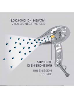 - Generador iónico de nuevo diseño: emite más de 2.000.000 iones negativos por cm3 - Reducción fuerte de la carga electrostática - El cabello es más hidratado, brillante y brillante - Menos tiempo de secado