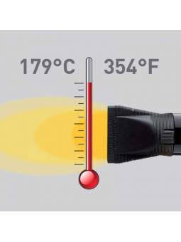 - Alta temperatura (354oF). Ideal para secar durante los tratamientos con queratina - Elemento calefactor de doble onda:temperatura alta constante del aire en toda la zona de salida - Barril frío:gracias al aislamiento especial del elemento calefactor, los estilistas pueden manejar el secador de pelo desde el barril sin riesgo de quemarse - Boquilla ultra estrecha:para un verdadero "efecto de alisado" incluso en el cabello más duro - Parrilla recubierta de Turmalina:ioniza el aire revitalizando el cabello y haciéndolos más brillantes