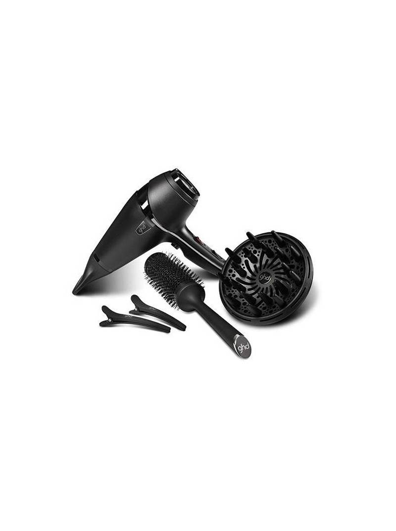 Consigue un cabello espectacular en la mitad de tiempo* con el secador profesional ghd air®. Su motor AC profesional de 2100W y su filtro de aire patentado aporta un potente caudal de aire para un secado dos veces más rapido*. No sólo seca tu cabello de forma más rápida, sino que gracias a su avanzada tecnología iónica reduce el encrespamiento y ayuda a mantener la hidratación natural del cabello. Control de temperatura y velocidad variables, y su boquilla, permite adaptarse a tu tipo de cabello, mientras que el botón de aire frío ayuda a fijar el peinado en su sitio. ghd air® es también un fantástico secador de diseño ergonómico para un máximo control y un sencillo manejo tanto para zurdos como para diestros. Y sus 3 metros de cable aporta una gran flexibilidad de movimiento mientras lo usas. ghd air® es compatible con el difusor ghd air®.