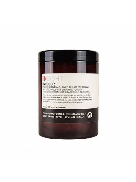 El polvo decolorante multitécnica para cabellos es la unión perfecta de las tres características fundamen- tales que un decolorante debe tener para poder ser elegido y utilizado por los mejores profesionales: elevada eficacia, para obtener el máximo aclarado posible en cualquier situación alta cosmeticidad, para garantizar brillo extremo y suavidad al cabello la textura perfecta, ideal para poder expresarse a mano alzada en el cabello, creando matices y esfumados perfectos. El Polvo decolorante multitécnica es un polvo blanco, con amoníaco: apto para todas las técnicas de decoloración, especialmente a mano libre, permite mantener el cabello con su natural brillo e integridad. Aceite Biológico de Argán + Aceite Biológico de amaranto