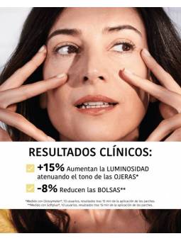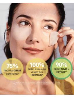 Parches para el contorno de ojos Anti-fatiga e Iluminadores que ayudan a disminuir los signos de fatiga mejorando el aspecto de las ojeras y las bolsas e iluminando la mirada apagada. Ayudan a desinflamar la zona del contorno de ojos, además de proporcionar un efecto calmante y refrescante, gracias a su fórmula rica en Vitamina C, Pepino y Ácido Hialurónico.