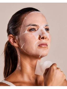 Además de tratar la piel del rostro, esta mascarilla está diseñada para tratar la zona del cuello y del escote (según se desee), que también reflejan signos de envejecimiento como arrugas o falta de hidratación, y que conviene tratar de la misma manera que cuidamos la piel de la cara para revertir las consecuencias del paso del tiempo.