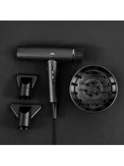 Secador iónico profesional con motor DC ultraligero, potente y eficiente. Con una vida útil desde las 1000 a las 1300 h. Función de limpieza automática. Filtro lavable para mejorar la protección del motor. El generador de iones avanzado integrado ayuda a reducir el tiempo de secado y el encrespamiento. Incluye 1 difusor y boquillas de 2 tamaños diferentes.