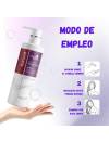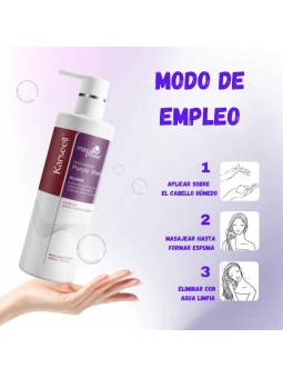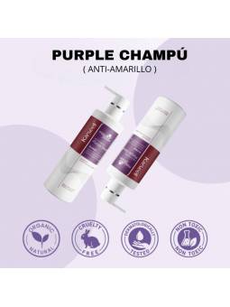 Modo de empleo: -Para obtener unos resultados óptimos use el champú purple 2-3 veces a la semana en lugar de champú común. -Verterer champú purple sobre el cabello húmedo -Masajear hasta que se forme espuma -Dejar actuar durante 2 minutos. -Enjuagar con abundante agua. -Fórmula suave para su uso frecuente sin eliminar del cabello sus aceites naturales, asegurando que permanezca saludable.