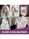 NEUTRALIZA LOS TONOS AMARILLOS Y NARANJAS Este champú violeta está formulado para eliminar los tonos no deseados del pelo rubio,gris o decolorado, dejando un acabado fresco y brillante, perfecto para mantener un rubio frío.