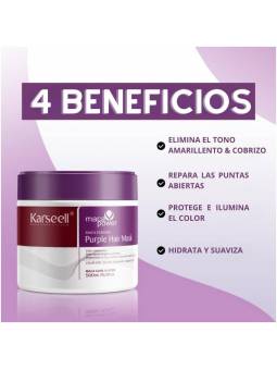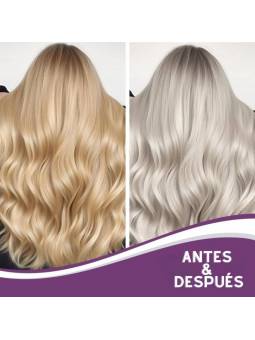 Beneficios: -Neutraliza los tonos cobrizos:Elimina instantáneamente los tonos amarillos y anaranjados, dejando el cabello con un brillo fresco, vibrante y de calidad de salón. -Fórmula rica en humedad:Hidrata y nutre profundamente el cabello, dejándolo suave, liso y con un aspecto saludable después de cada uso. -Resultados de nivel profesional: Especialmente formulado para combatir el cabello con mechas, decolorado o gris, devolviéndole su luminosidad y sedosidad natural. -Aplicación rápida y fácil:Proporciona resultados de nivel de salón en solo minutos: perfecto para una transformación del cabello rápida y efectiva.