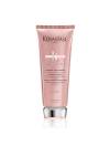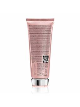 Aplica una cantidad del tamaño de una avellana sobre el cabello húmedo. Masajea la fibra de medios a puntas, evitando las raíces para asegurar un acabado ligero. Deja actuar de 2 a 3 minutos. Emulsiona y aclarar abundantemente con agua.