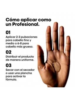 -Frotar en las manos y distribuir el producto de manera uniforme de largos a puntas.