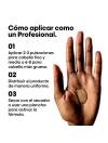 -Pulverizar en la mano. Comenzar con 2-4 pulverizaciones para cabello fino a medio y 6-8 pulverizaciones para cabello más grueso.