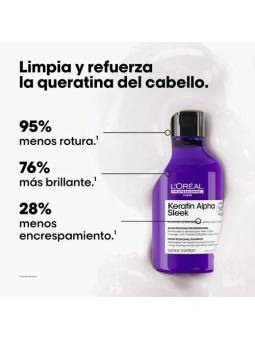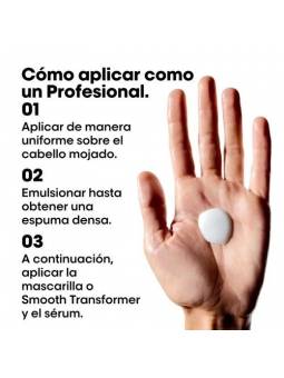 Modo de empleo: -Aplicar de manera uniforme sobre el cabello mojado. -Masajear hasta obtener una espuma densa. -Aclarar. -En caso de contacto con los ojos, aclarar de inmediato con abundante agua. -A continuación, aplicar Smooth Transformer Keratin Alpha Sleek una vez a la semana para una suavidad duradera hasta 2 semanas. En otros días de lavado, usar nuestra mascarilla profesional en lugar de Smooth Transformer.