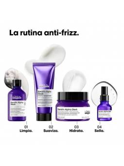 Un champú profesional sin sulfatos con una textura suntuosa y ultra cremosa que limpia suavemente la fibra al tiempo que suaviza y refuerza la queratina del cabello. Suavidad duradera y control del encrespamiento y el volumen.