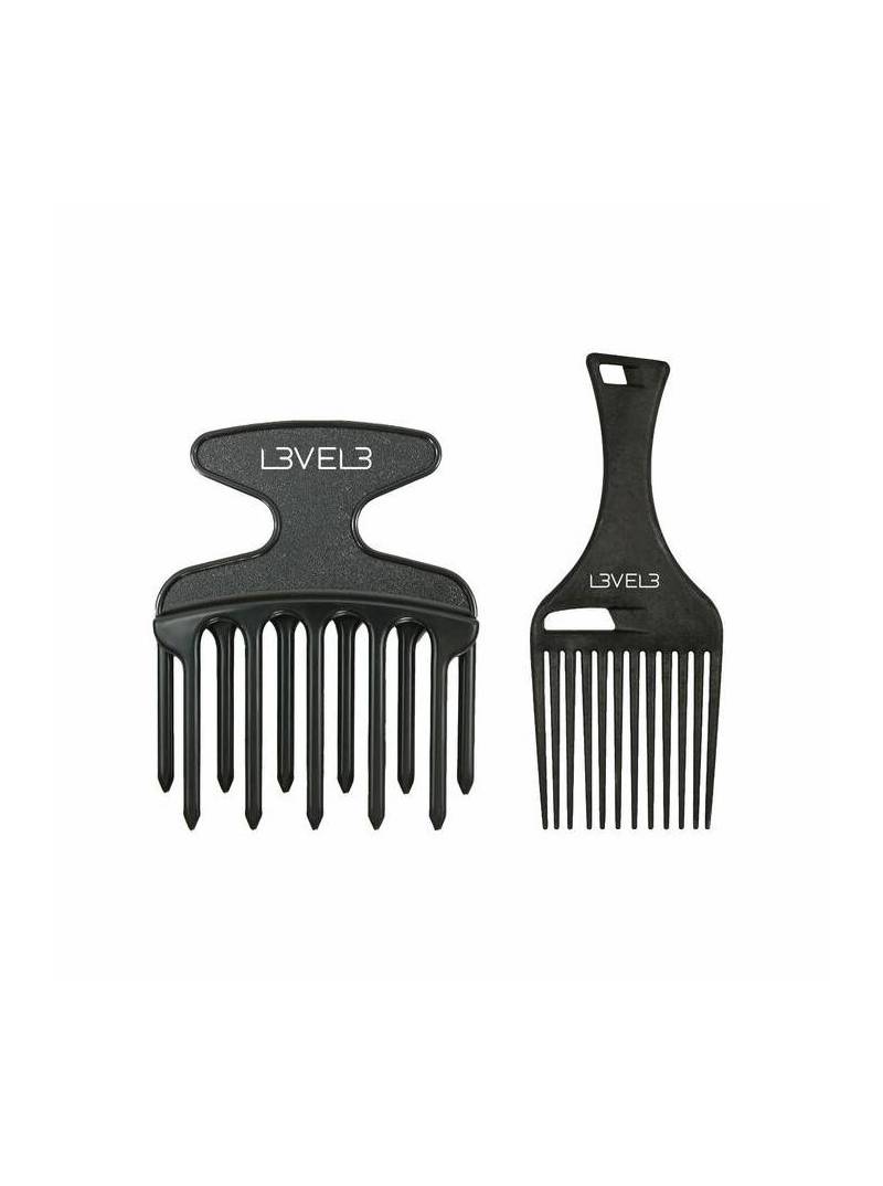 Juego de peines para púas de L3VEL3: 2 piezas está hecho de resina duradera que es más fuerte y más resistente al calor que otras marcas. Este juego de peines tiene puntas redondeadas, lo que le permite deslizarse suavemente por el cabello. El diseño ergonómico brinda comodidad durante el uso.