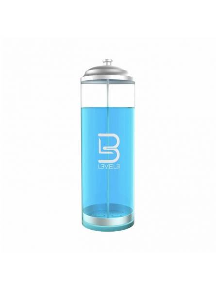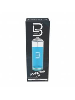 El frasco desinfectante profesional de L3VEL3 cuenta con un vidrio resistente, fácil acceso simplemente levantando la tapa y un fondo acolchado de goma resistente para un agarre antideslizante. Ideal para desinfectar herramientas de corte de cabello, incluidas tijeras, peines y cepillos.
