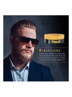Coloque una pequeña cantidad de cera para el cabello en la palma de sus manos y frótela con un movimiento circular para calentarla. Aplicar uniformemente en todo el cabello en el estilo deseado.
