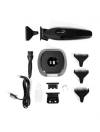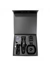3 peines guía (1, 2, 3mm), 1 aceite lubricante, 1 cepillo de limpieza, 1 cable USB tipo C, 1 soporte de carga, 1 juego extra de cuchillas, tensión de resorte y cabeza oscilante para la sustitución.