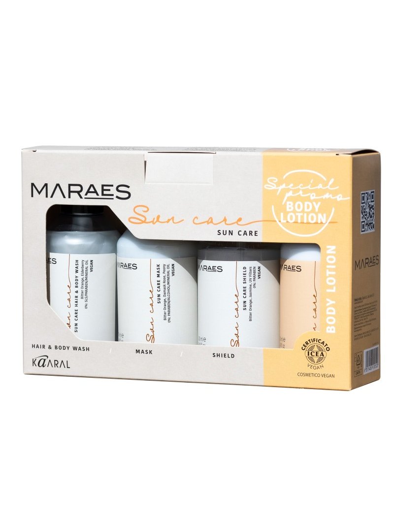 Contenido del kit 1x KAARAL MARAES SUN CARE SHAMPOO 250ML 1x KAARAL MARAES SUN CARE MASK 250ML 1x KAARAL MARAES SUN CARE SHIELD 250ML 1x KAARAL MARAES SUN CARE BODY LOTION 250ML