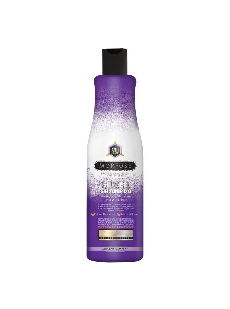 Morfose Silver Shampoo cubre y elimina los tonos amarillos cálidos y los reflejos en cabellos decolorados y rubios. Proporciona un brillo resplandeciente para la apariencia apagada de las canas. El rico y cremoso champú Morfose Silver limpia el cabello gris y de color claro y le da un brillo natural.