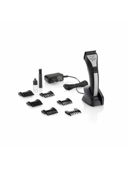 Sistema de cambio rápido que facilita la limpieza y el cambio de cabezal. Funciona a cable y batería, 80 minutos de carga rápida, batería de Litio altamente eficiente sin efecto memoria de 120 minutos de autonomía. Motor controlado por chip para una potencia de corte constante independientemente del nivel de carga de la batería o del tipo de cabello.