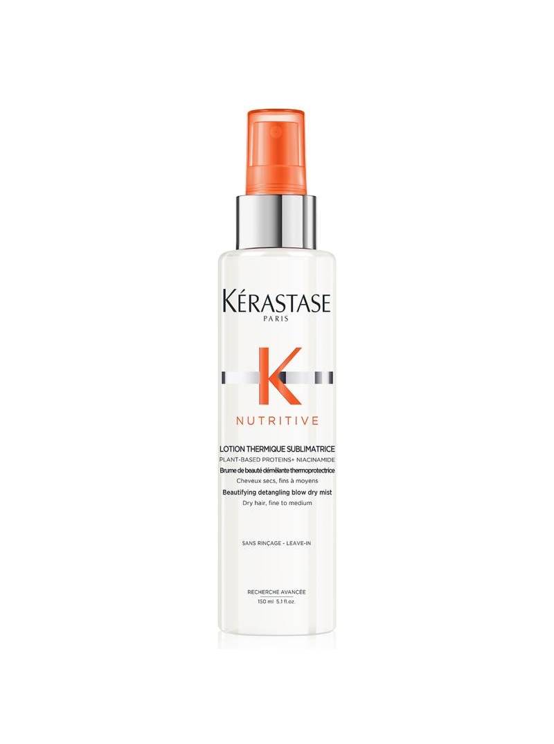 La Lotion Thermique Sublimatrice de Kérastase es una bruma embellecedora desenredante que prepara el cabello seco de fino a medio para el secado. Esta bruma para el cabello compuesta de lípidos y nutrientes hidrata y refuerza la barrera protectora del cabello. Mejora la flexibilidad y protege hasta 230 °C. Un +82 % de hidratación inmediata Envase fabricado con un 95 % de plástico reciclado.