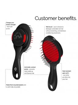ONE Brush PRO: el ÚNICO cepillo de cerdas ajustables del mundo -Tecnología patentada de fuerza de cerdas ajustable -Diseñado para reducir la rotura y minimizar la caída del cabello. -Apto para TODO tipo de cabello -Hecho de plástico reciclado