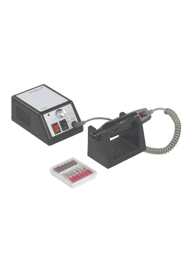 Torno básico que responde a todas las necesidades de la manicura y construcción de uñas artificiales. El equipo viene equipado con doble dirección de giro (hacia delante y hacia atrás). La velocidad se puede adaptar, de 0 a 25.000 revoluciones por minuto. El accesorio manual, con un motor de 10W y cable flexible, ofrece un funcionamiento silencioso y correcto.