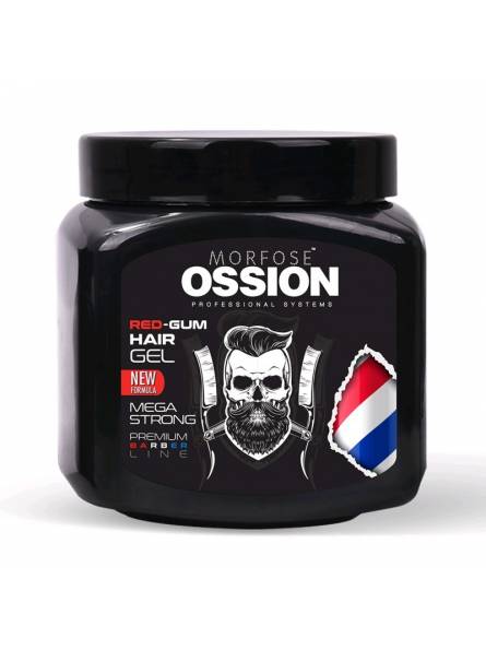 El gel para el cabello Ossion Red-Gum proporciona una fijación megafuerte y crea peinados extremos y formas estructuradas.