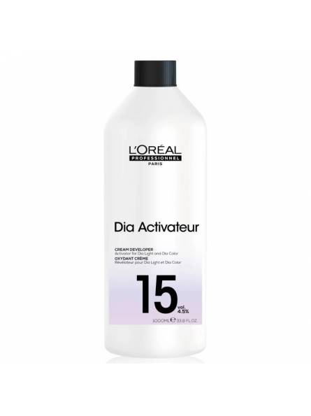 L'Oréal revelador diactivateur activador 15 volúmenes (4,8%) específico para coloraciones Dialight y Diarichesse en 1000ml. L'Oréal Diactivateur se puede utilizar para ambos baños de color (Dia light y Dia richesse) y en los siguientes servicios de peluquería: